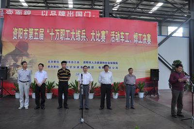 王大能副总司理在致辞中对资阳市第五届“十万职工大练兵、大角逐”车工、焊工在我公司举行体现幸运,对与会的向导和参赛选手体现接待,希望选手们能施展水平,赛出好效果。