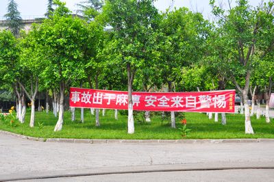 | 清静生产月活动时代,公司主要蹊径都悬挂有种种宣传口号 |