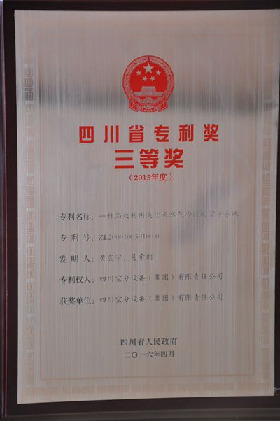 我公司黄震宇、易希朗的发明专利“一种高效使用液化自然气冷能的best365网页版登录系统”被四川省政府授予四川省专利三等奖。