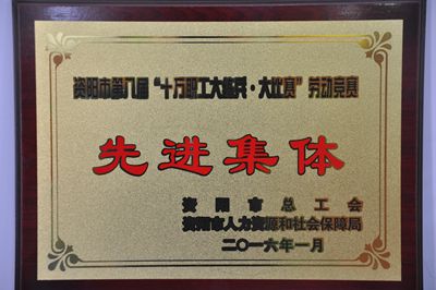 (集团)公司被资阳市总工会、资阳市人力资源和社会包管局授予资阳市第八届“十万职工大练兵、大角逐”劳动竞赛“先进整体声誉。