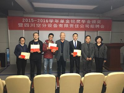 2016年11月中旬,(集团)公司董事长、总司理、党委书记单金铭一连第12年前往华中科技大学、浙江大学和西安交通大学发放“单金铭制冷低温奖学金”并授课,勉励青年本科生、硕士研究生、博士研究生献身低温事业,开发天下领先低温手艺。