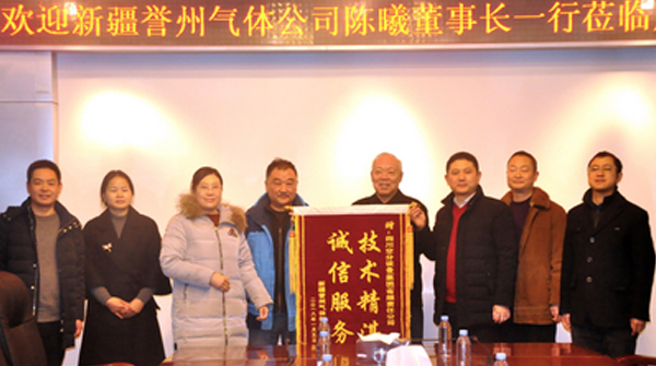 誉州气体给我公司送锦旗:手艺精湛,诚信效劳