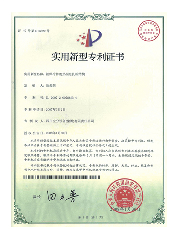 适用新型专利证书-被保冷件绝热层包扎新结构