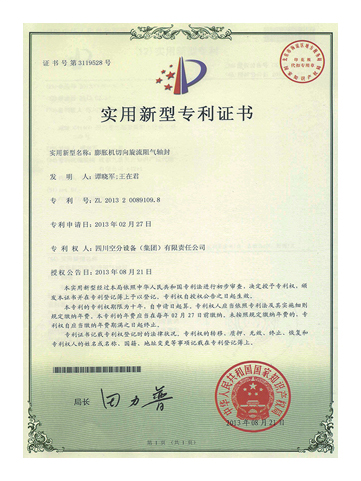 适用新型专利证书-膨胀机切向旋流阻气轴封