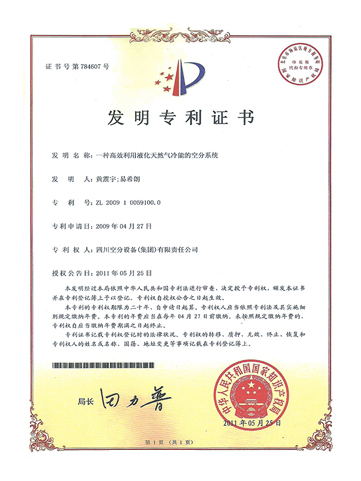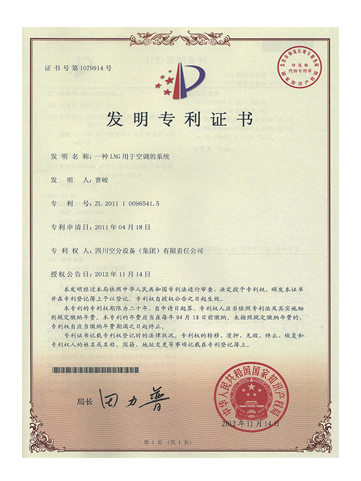 发明专利证书-使用液化自然气冷能的空气疏散要领
